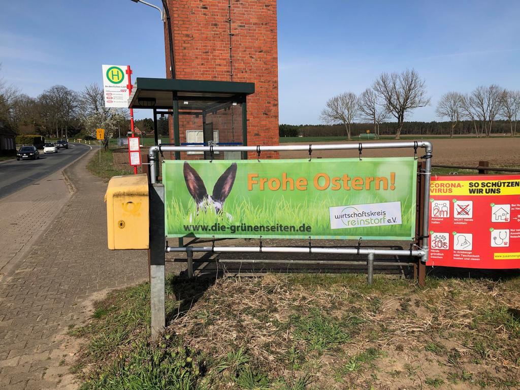 Bisher hingen unsere Banner dort immer an einem Geländer, nun haben wir das ganze etwas professioneller gestaltet und dort ein Gestell montiert. Einweiterer großer Banner steht in Barendorf. Wir bieten hier auch anderen Vereinen die Möglichkeit bei Veranstaltungen ihre Banner zu präsentieren.